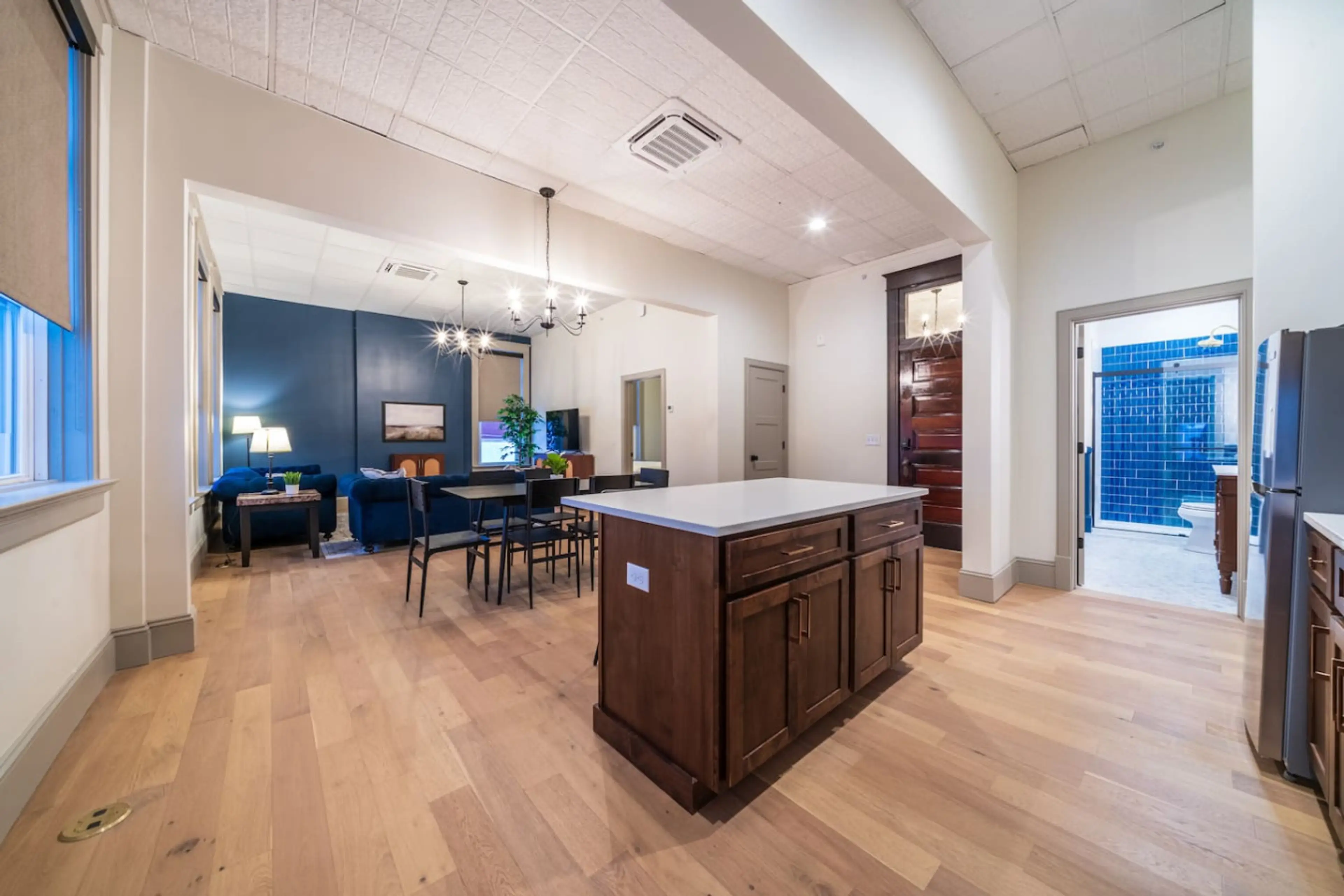 Huge, luxury 3 bed, 2 bath apartment on the 2nd floor with keyless entry, fast Wi-Fi, a smart TV, and a fully equipped kitchen with custom cabinetry and quartz countertops. All 3 bedrooms have king beds and blackout shades. Located just steps away from wedding venues, bars, restaurants, and shopping...